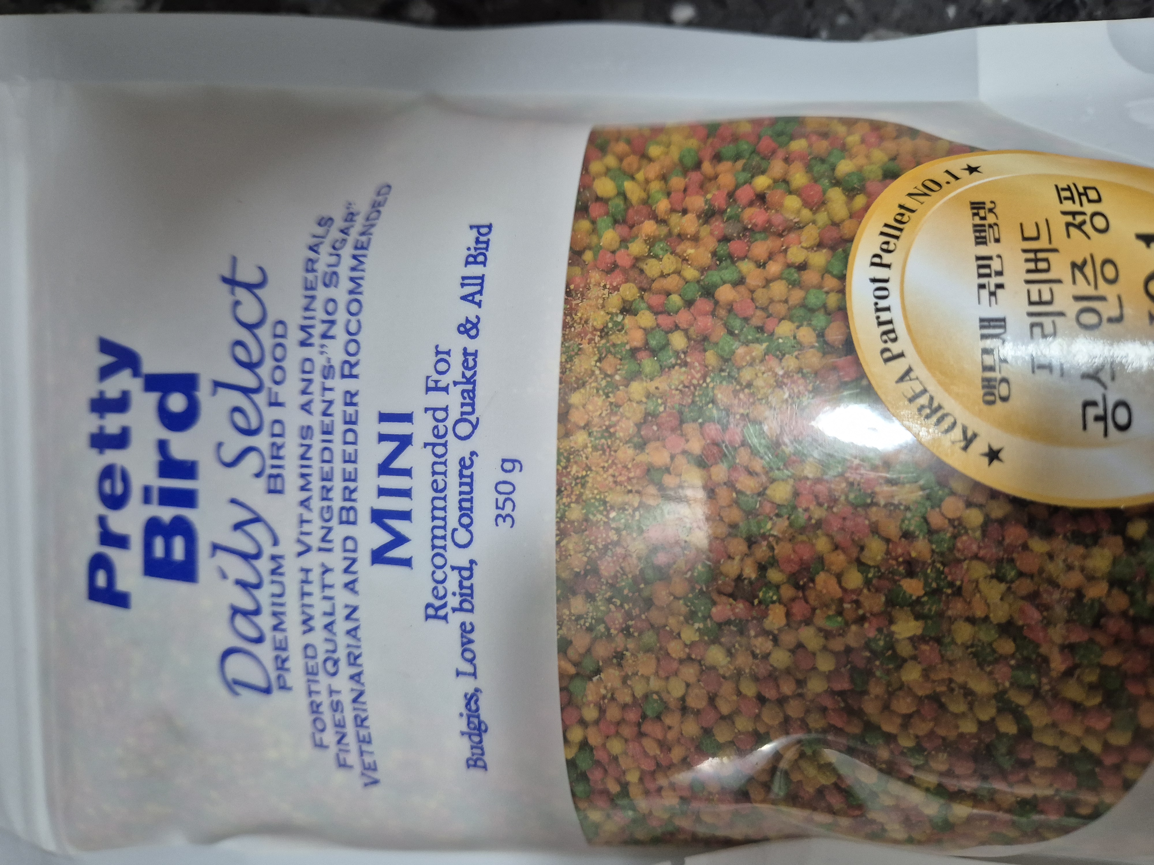 프리티버드 데일리 셀렉트 미니 펠렛 (100g/350g) (핀치, 사랑앵무, 왕관, 모란, 코뉴어, 퀘이커, 썬코)